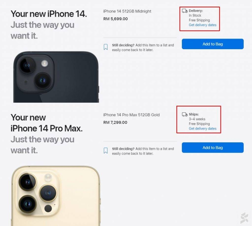 At the time of writing, it appears that the shortage of supply has also impacted potential iPhone 14 Pro buyers in Malaysia. On Apple’s official online store, the lower iPhone 14 and iPhone 14 Plus currently have stocks available while the iPhone 14 Pro and iPhone Pro Max now have an estimated waiting time of 3-4 weeks. The iPhone 14 is officially priced from RM4,199 while the iPhone 14 Pro starts from RM5,299 in Malaysia. ― SoyaCincau