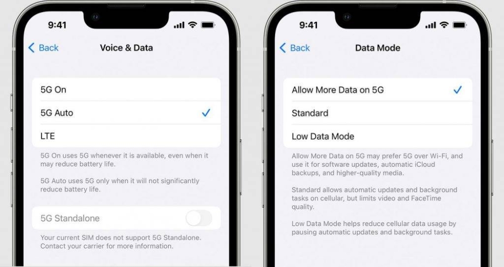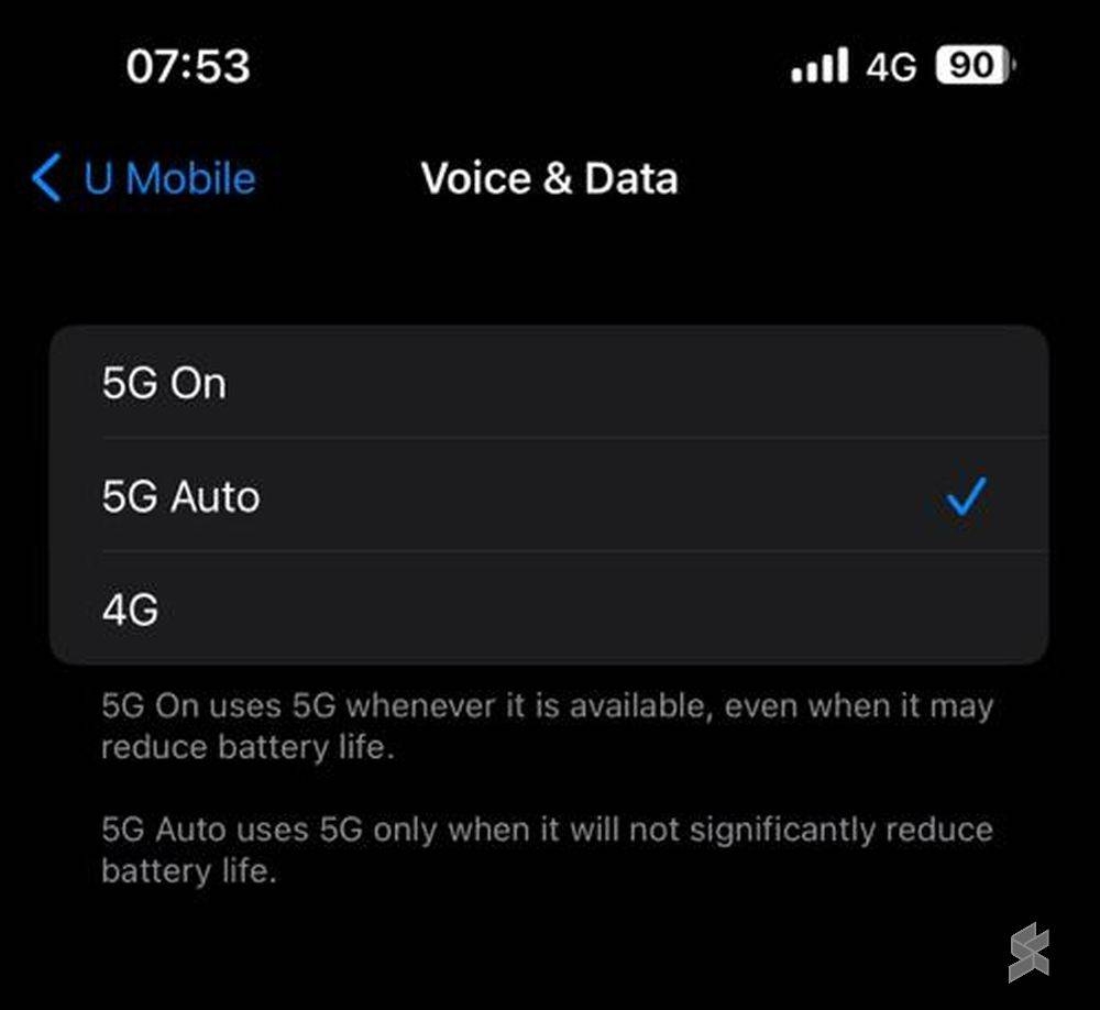 If your telco is supported, you should be able to see 5G On/5G Auto options under your iPhone’s Voice & Data Settings as shown above. Even if you enable 5G, you would be limited to just 4G if your postpaid and prepaid plan is not 5G supported.