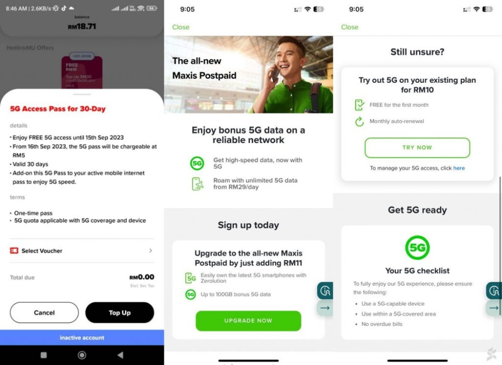 This is something that the Prepaid customers don’t have to worry about as their 5G Access Pass will not renew automatically. If they want to continue using 5G, they can subscribe to the pass at the same monthly rate of RM10 per month.