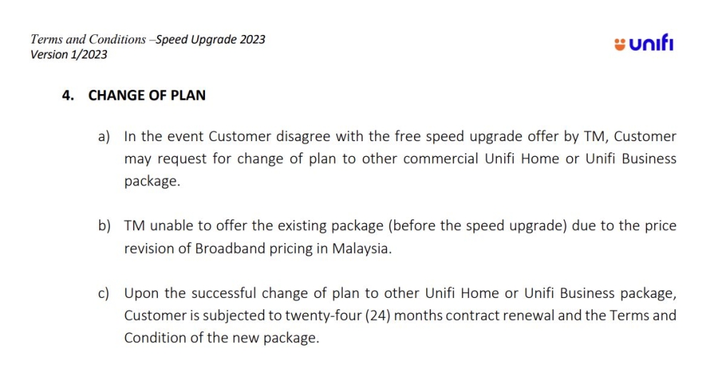 No Unifi contract renewal for Free Speed Upgrade unless...