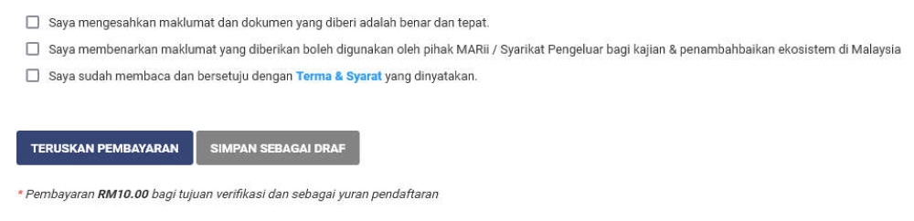 Each registration will incur a charge of RM 10 for verification and as the registration fee.