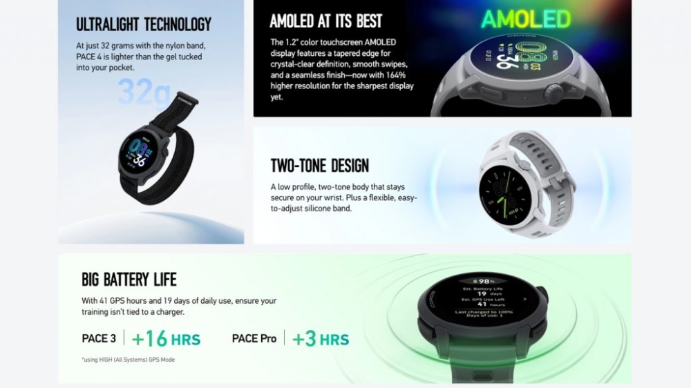 It brings upgrades such as a new AMOLED display, dual-band GPS, longer battery life, and a microphone. More info on the Coros Pace 4 after the jump.