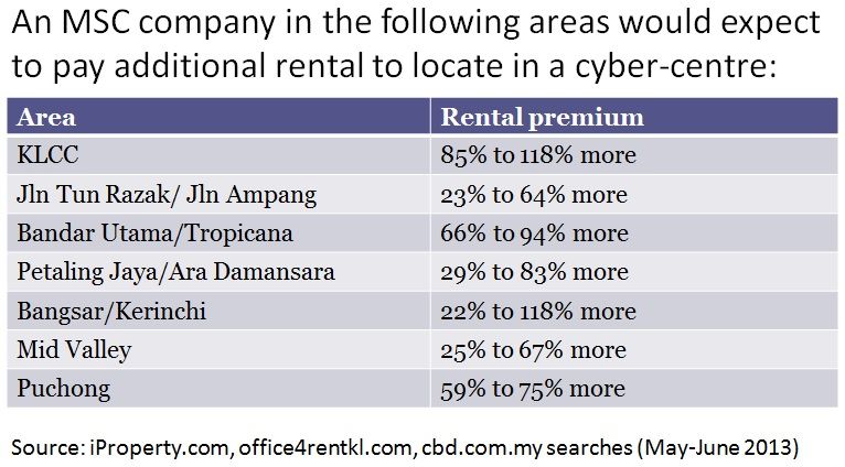 “The rental at KLCC (the Kuala Lumpur City Centre), compared with similar buildings nearby, can be from 85 per cent to 118 per cent higher,” said TeAM-PI director Dr V. Sivapalan. “There is actually a huge premium that people are paying for MSC Malaysia status.