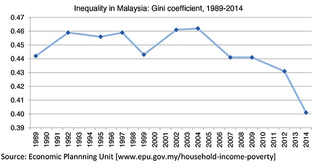 It is also worth noting that the World Bank’s Malaysia Economic Monitor put the 2014 Gini coefficient of gross household income at 0.421, exceeding the government’s calculation of 0.401.