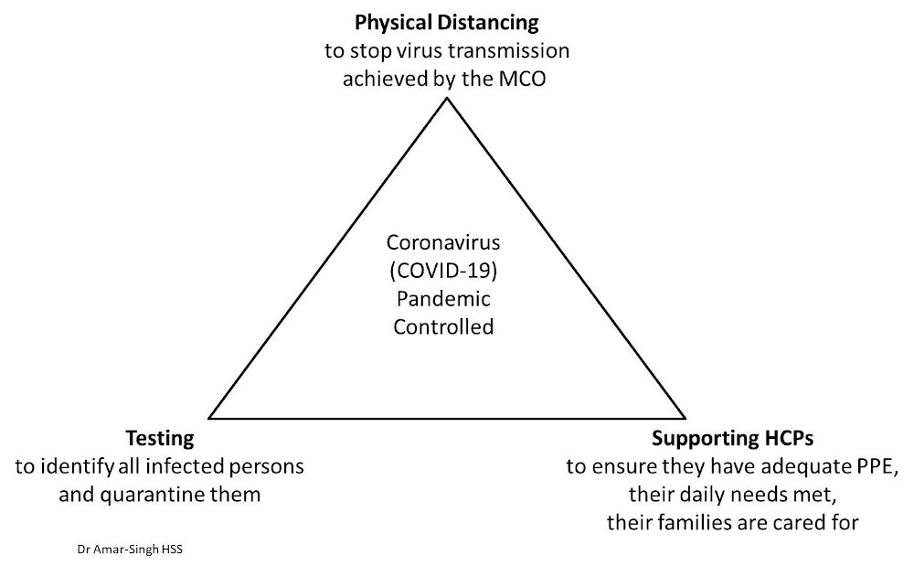 Firstly we need to continue our physical (social) distancing measures to stop virus transmission. We can achieve this with our movement control order (MCO). Without it we would have a roaring outbreak on our hands. As it was announced today, it has been necessary to extend the MCO a further two weeks and we hope it does not need to be extended further.