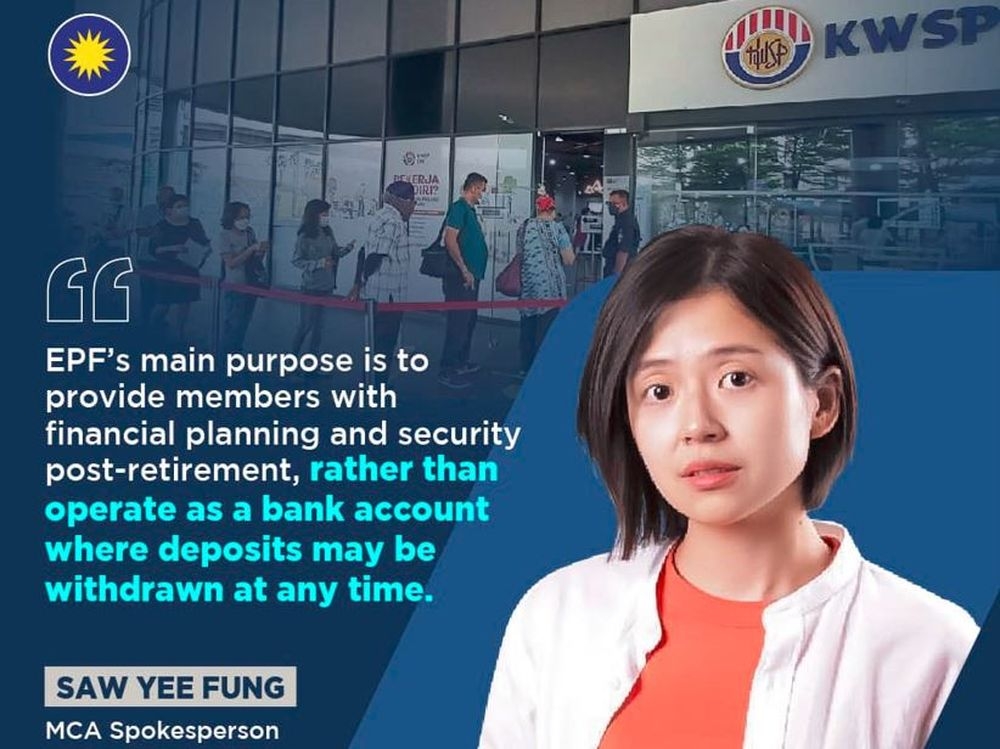 EPF’s main purpose is to provide members with financial planning and security post-retirement, rather than operate as a bank account where deposits may be withdrawn at any time.