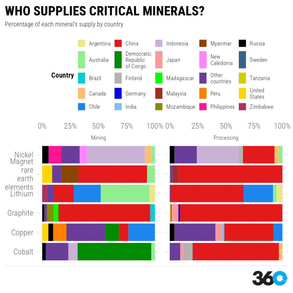 Supply of critical minerals and rare earth elements comes only from a few countries.