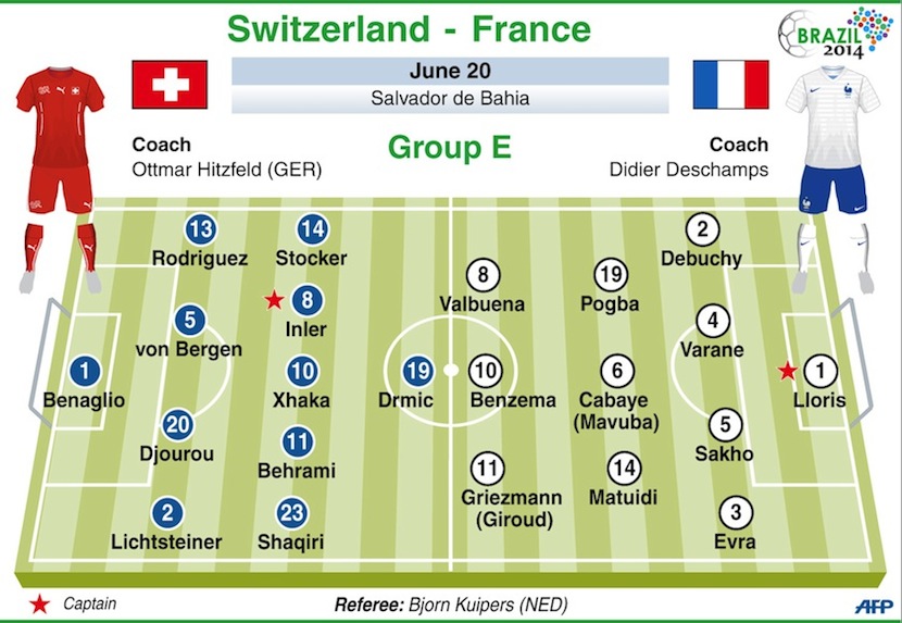 But France beat Jamaica 8-0 in their last friendly and started Group E with a steely 3-0 win over Honduras. The Swiss have taken note of Real Madrid striker Karim Benzema’s goalscoring run in recent friendlies, and against Honduras, and coach Ottmar Hitzfeld shrugs off any favourites tag.