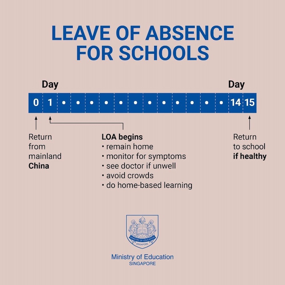 The LOA will start from the day after one’s arrival in Singapore. It applies to students and staff in polytechnics and ITE who return from China on January 14 or later, and those from schools who return on January 15 or later.