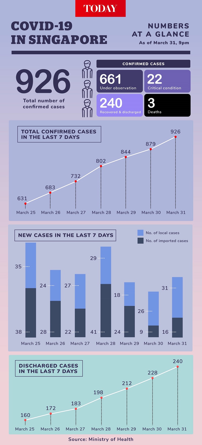 SINGAPORE, April 1 — The Ministry of Health (MOH) yesterday announced 47 more cases of Covid-19, bringing the total numbers of infections here to 926.