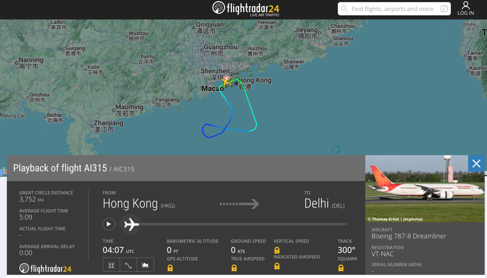Boeing and Air India did not immediately respond to a request for comment on the Hong Kong-New Delhi flight.