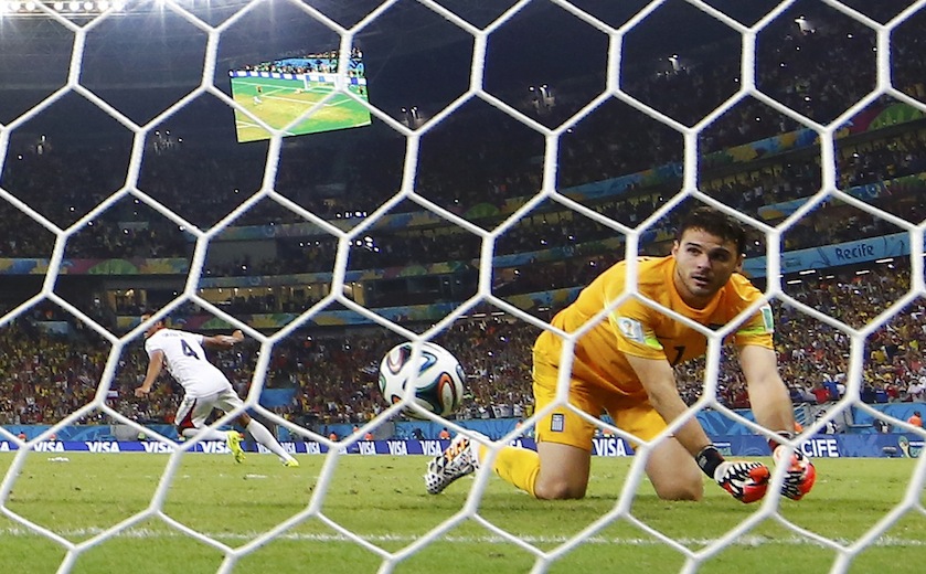 Ten-man Costa Rica stun Greece in penalty shoot-out