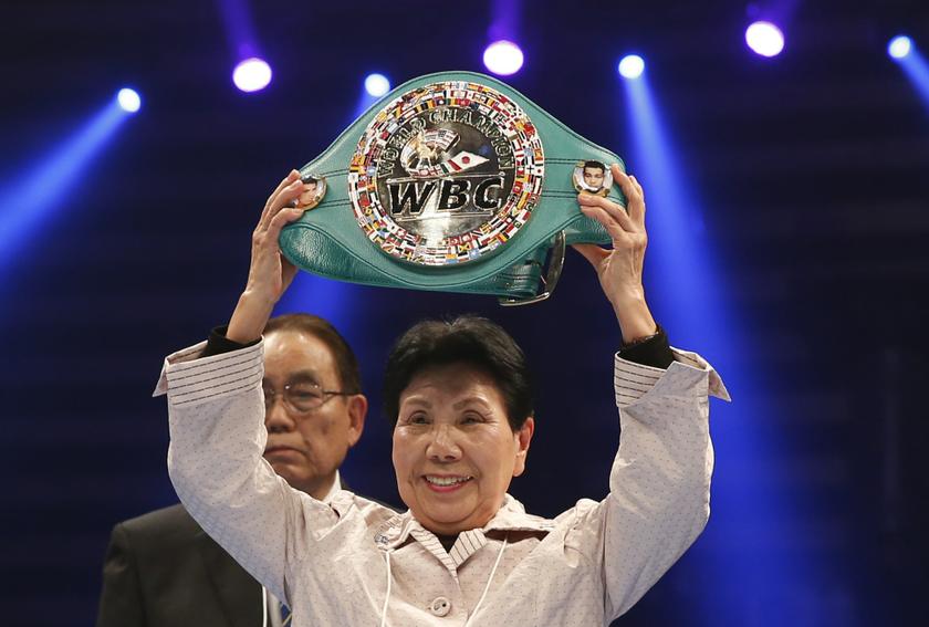 Former Japanese professional boxer presented with WBC honorary championship belt